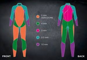 El neopreno YAMAMOTO 40 se utiliza en 5 espesores diferentes, que van desde 1,5 mm hasta 5 mm, para un ajuste extremadamente flexible que es a la vez ceñido y cómodo. Se emplea neopreno de 2 mm alrededor de los brazos y hombros para proporcionar movimiento sin restricciones para una eficiencia y rendimiento máximos en la brazada.