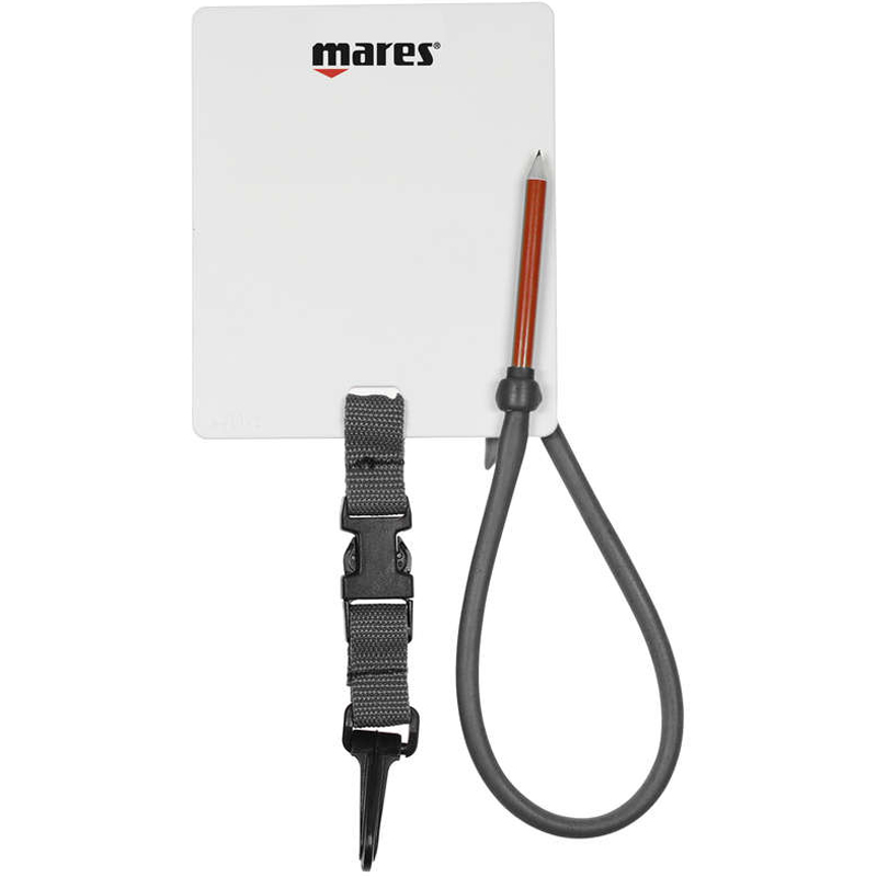 La pizarra subacuática te permite anotar las referencias importantes bajo el agua. Su uso es realmente variado, desde el profesional durante la formación hasta los datos personales.